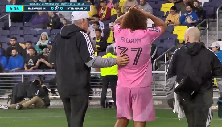 03月12日讯 美冠杯1/8决赛首回合,迈阿密国际客战纳什维尔。开场7分钟,法尔肯伤退,卢扬替补登场。