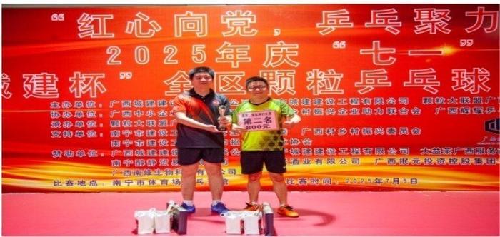 7 月 5 日上午 8 时,为庆祝中国共产党成立 104 周年暨 2025 年 “城建杯” 全区乒乓球邀请赛在南宁市体育场乒乓球馆举行。由广西城建集团有限公司、南宁城建建设集团有限公司、颗粒大联盟广西分会主办;广西中小企业经济互助商会、广西乡村振兴企业助力联合会、广西辉耀乒乓球俱乐部协办,大益茶广西服务商、南宁醇静贸易有限公司、广西汾联酒业有限公司、广西抿元投资控股集团有限公司为本次比赛提供全方位的赞助与保障,让我们能够以饱满的热情和高昂的斗志,共同见证到这场乒乓盛宴!